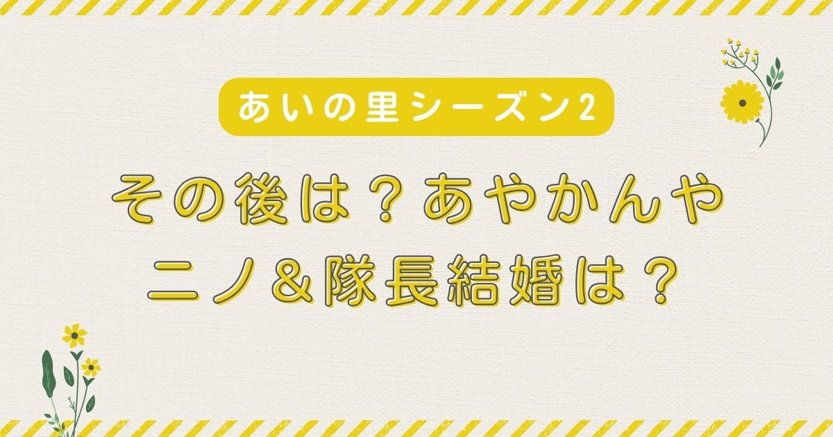結論として、あいの里シーズン2の“その後”でいちばんはっきりしているのは、ニノ&隊長が今も前向きな交際を続けているように見えることと、あやかんが自分らしいペースで前に進んでいることです。