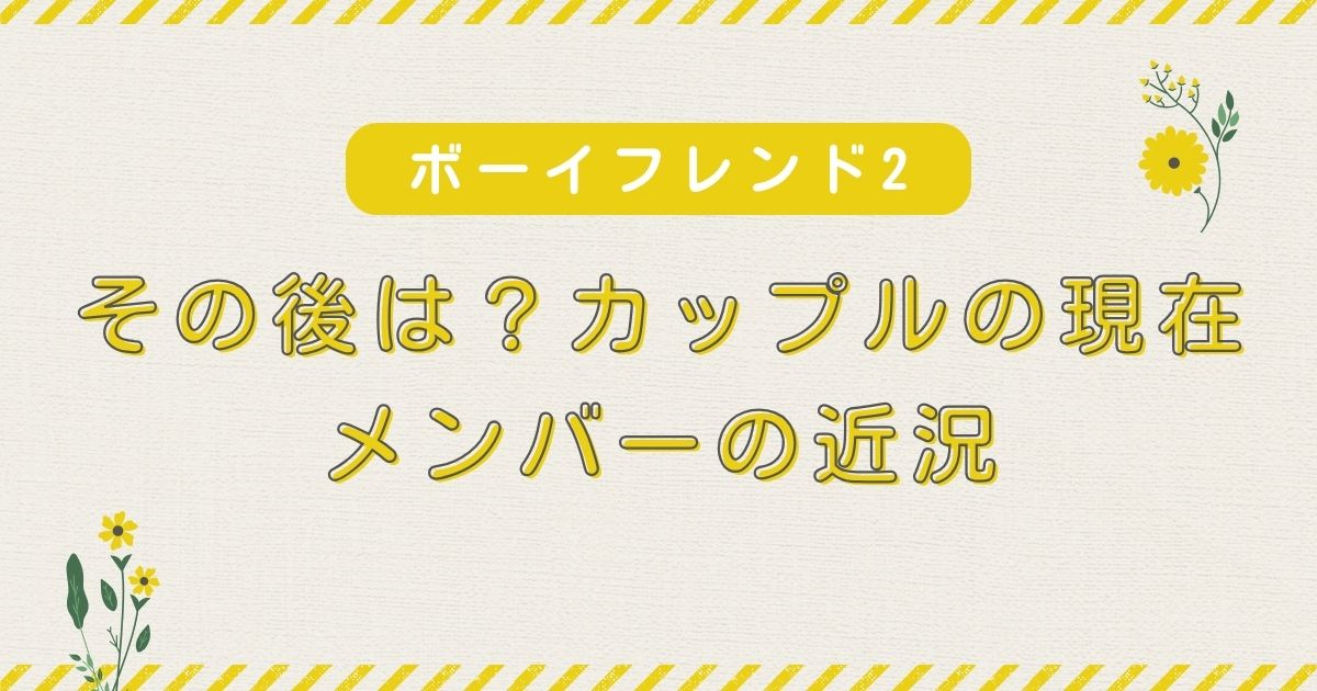 この記事では、『ボーイフレンド2』の成立カップルの現在や、ボミ・イザヤ・ジョウブ・テホン・ヒロヤらメンバーのその後について、ご紹介します。